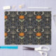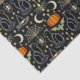 A sophisticated Art Deco–inspired Halloween repeating pattern featuring sleek black cats with luminous green eyes, stylized pumpkins, crescent moons, spiderwebs, and delicate spiders. The design is arranged in a balanced, symmetrical rhythm with clean geometric lines and elegant motifs, set against a deep black background. A refined color palette of gold, warm ivory, muted orange, soft gray, and subtle green accents gives the pattern a vintage-glam feel that nods to 1920s–1930s Deco aesthetics while remaining playful and seasonal.