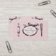Eine Chic-, Vintage und entzückendegeschäftskarte mit einem Leinwandhintergrund im Rosa mit einem wischen und Rollen-Button auf der Front mit Ihrem Handelsnamen eingewickelt in einem Bogen. Groß für Bäcker, Bäckereien, Bäckerei, Backen, Restaurants, Cafés, private Köche, Köche, Gebäck-Köche und mehr!