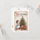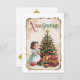 Capture the innocent wonder and joy of the holiday season with this beautiful Vintage Child and Christmas Tree design. The charming illustration features a wide-eyed little girl dressed in a classic white dress, looking in awe at a brightly decorated Christmas tree surrounded by a huge stack of colorful presents.