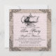 In den antiken Beige- und Palastrosa-Farbtönen lädt diese Vintage Abbildung eines verzierten Teekocher-Set gegen ein altes französisches Pergament zu einem Brautparty oder einem Baby-Duschbad-Party ein.