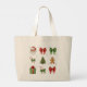 Celebrate the magic of the season with this vintage-style Christmas collage tote bag. This cream-colored canvas bag features a whimsical grid of watercolor holiday illustrations, including a classic Santa Claus, a decorated Christmas tree, a gingerbread man, candy canes, and elegant red and green bows. Perfect as a festive market bag or a reusable holiday gift bag, this charming design brings a nostalgic, cozy aesthetic to your winter wardrobe