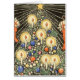 Vintage Illustration Weihnachtsbaum mit beleuchteten Kerzen, einem strahlenden Stern und Strümpfen.