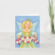 Vintages Bild der Weihnachtszeit mit einem Engel mit Halo und Flügeln, die einen Schal mit dem Wort "Freude" tragen.