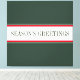 Fest rote und grüne Bandbonbonbonbonbonbonbonbonbons markieren "SEASON'S GREETINGS" in eleganter Typografie über die Länge eines mittleren weißen Streifen. Große, gewagte Waldstreifen über und unter ergänzen die festliche, moderne Komposition. Alle Farben und Texte können personalisiert sein. Ich wünsche Ihnen einen schönen Urlaub!