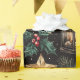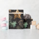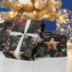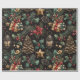 Spread some holiday cheer with this elegant Vintage Christmas Lanterns wrapping paper. A black background with a variation of pinecones, poinsettias, berries, gifts, stars, and vintage lanterns.