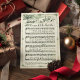 Pretty vintage sheet music of "O Come All Ye Faithful". Lovely images with horse drawn sleigh, and church on a snowy Christmas morning. Reverse has elegant gold foil accents and white swash, which can be removed if you like.