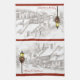 Das Küchentücher mit einer Schwarz-Weiß-Skizze eines Viktorianischen Dorfes - die einzige Farbe ist die Straßenlaterne und die Weihnachtsdekorationen.