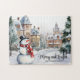 Vintage Christmas Village Scene Merry and Bright Puzzle