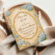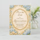A romantic vintage coastal design featuring soft blue hydrangeas, seashells, nautical rope, and delicate anchors surrounding an elegant ornate frame. The watercolor florals and warm antique parchment background create a timeless seaside aesthetic inspired by classic botanical illustrations and coastal gardens. Perfect for an elegant celebration with a refined ocean-inspired atmosphere.