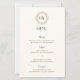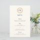This vintage coastal wedding menu is designed for couples planning a beach or destination wedding with a modern vintage aesthetic. Featuring a refined art-deco influence and a balanced teal and warm orange color palette, it brings a polished yet relaxed feel to coastal wedding receptions. The subtle decorative detailing at the top adds a sense of structure and elegance, making the menu feel intentional and thoughtfully designed without overpowering the table setting.