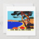 Französische und europäische Reisewerbung - Strand, Dorf, Menschen, Bäume, blaues Meer und Himmelsbild
