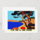 Französische und europäische Reisewerbung - Strand, Dorf, Menschen, Bäume, blaues Meer und Himmelsbild