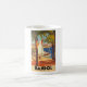 Besondere Vintage europäische Reisewerbung - Strand, Dorf, Menschen, Palmen, blaues Meer und Himmelsbild