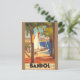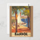 Besondere Vintage europäische Reisewerbung - Strand, Dorf, Menschen, Palmen, blaues Meer und Himmelsbild