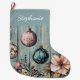 This beautiful Christmas stocking features a vintage country design with classic ornaments, winter florals, and festive greenery set against a rustic farmhouse wood background. Personalized with a name for an extra special touch, it blends nostalgic holiday charm with cozy country style. Perfect for hanging by the fireplace, decorating your holiday mantel, or gifting to family members, this stocking adds warmth and character to any Christmas celebration.