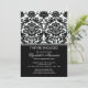 Unsere elegante Ankündigung der Verlobung zeigt einen schönen schwarz-weißen Damast mit einer Charcoal Gray Band. Ideal für eine Einladung zu einer Verlobung oder eine Ankündigung zur Verlobung! Stellen Sie sich einfach mit Ihren Informationen und Sie sind alle Set zu gehen! Matching Artikel enthalten Brautparty laden, danke Karten, Briefmarke und mehr in unserem Shop!