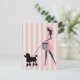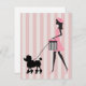 Vintage Dame, ganz in Rosa gekleidet und dabei ein niedliches schwarzes Poodle lief