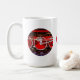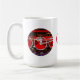 Vintager Dampfzug mit Rädern, Stäben und Antrieben. Texturierte Fotografie zum Gedenken an das Zeitalter von Dampf und Eisen. Eisenbahnkunst. Maßgeschneiderte Kaffeemaschine Tasse. Sie können das Bild ändern und den Text ändern oder löschen!