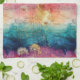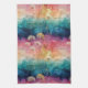 Vintage dandelion abstract pattern kitchen towel featuring delicate seed heads layered over rich teal, pink, and muted purple watercolor textures. Dreamy and artistic with an ethereal mixed-media aesthetic, this seamless design is ideal for botanical art lovers, boho style fans, nature enthusiasts, and vintage-inspired decor admirers.