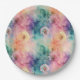 Vintage dandelion abstract pattern paper plate featuring delicate seed heads layered over rich teal, pink, and muted purple watercolor textures. Dreamy and artistic with an ethereal mixed-media aesthetic, this seamless design is ideal for botanical art lovers, boho style fans, nature enthusiasts, and vintage-inspired decor admirers.