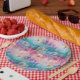Vintage dandelion abstract pattern paper plate featuring delicate seed heads layered over rich teal, pink, and muted purple watercolor textures. Dreamy and artistic with an ethereal mixed-media aesthetic, this seamless design is ideal for botanical art lovers, boho style fans, nature enthusiasts, and vintage-inspired decor admirers.