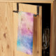 Vintage dandelion abstract pattern kitchen towel featuring delicate seed heads layered over rich teal, pink, and muted purple watercolor textures. Dreamy and artistic with an ethereal mixed-media aesthetic, this seamless design is ideal for botanical art lovers, boho style fans, nature enthusiasts, and vintage-inspired decor admirers.