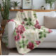 Dies ist ein Vintages Fleece-Blanket, das viktorianische Illustrationen von rosa Rosen auf neutraler Basis zeigt. Das Muster stammt von einem alten Wallpaper, das im öffentlichen Bereich gefunden wurde.