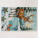 A heartwarming vintage Christmas illustration featuring a deer and robins by a frozen pond. The soft tones and snowy details make this design perfect for timeless holiday cards.