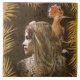 Diese Fliese benutzt die Grafik, die ein dekoratives viktorianisches Mädchen- und Vogelporträt der Vintagen Art darstellt. Das Thema ist ein algerisches jüdisches Mädchen des Ende des 19. Jahrhunderts und der Vogel ist ein Böttcher von Nordafrika. Die Illustration hat eine goldene gemalte dekorative Grenze der Palme.