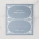 Eine elegante Hochzeitsfeier mit Vintagem Ambiente für eine staubblaue und weiße Hochzeitsfarbe. Es hat einen Vintagen verzierten Rahmen mit barocken Dekorationen. Der Hintergrund ist staubblau, der Rahmen, die Zeilen und der Text sind weiß.