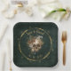 Ein wunderschöner dunkelgrüner Papierteller Vintager Blumenschädel mit Himmelshintergrund. Die Platte kann mit Namen und Datum angepasst werden.