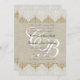 Mähdrescherspitze, Damast, beige Leinen- oder Leinwandblick, Gold und Diamanten, Initialen eines Vintage Skript-Schriftartes für Ihr Monogrammhochzeitslogo und Sie haben alle Elemente für eine Landhochzeit oder Vintage themed Hochzeit. Diese Hochzeitseinladungskarte hat rustikale Entwurfselemente mit ihr hat GEDRUCKT beige Leinenhintergrund und Vintages Spitzedamastmuster, dennoch wird verfeinert mit dem verzierten extravaganten GoldDruckWirbel und den kleinen Diamanten in einem verwickelten Muster, das mit Ihren Braut- und Bräutigaminitialen im Weiß- und Hochzeitseinladungstext im Grau mit Monogramm ist. Elke Clarke © MERKEN BITTE ALLE ELEMENTE WERDEN GEDRUCKT AUF der FLACHEN OBERFLÄCHE. Ein traditioneller Text für die Einladung in einem Skript-Schriftart der grauen und lila Arbeiten gut mit dem trendy Blick des beige Leinens oder der Leinwand wie das Gewebe zusammengepaßt mit weißer Spitze. Sie fügt eine Touch von whimsy diesem romantischen Entwurf hinzu. Für Hilfe bitte mit luxuryweddinginvitations@gmail.com in Verbindung treten