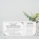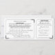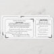Diese gedruckte Hochzeitseinladung im Stil eines Vintagen Tickets beinhaltet auch eine abnehmbare UAWG-Antwortkarte. Einfache runde Rahmen mit abgerundeten Rahmen sind mit verzierten, Vintagen dekorativen Blattrollen versehen. Die Namen der Braut und des Bräutigams sowie die UAWG werden ebenfalls mit dekorativen Rollstuhlarbeiten hervorgehoben. Auf der Rückseite, die Rücksendeadresse kann der UAWG und weitere Einzelheiten der Hochzeit auf die Einladung Portion hinzugefügt werden. Die Schnittlinie für die Antwortkarte wird auf der Rückseite der Einladung durch eine blassgebrochene Linie und ein Schere-Bild angezeigt.