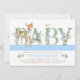 Jungen woodland Babydusche Einladungen mit bezauberndem Wasserfarben Vintages Reh auf blauem und grünem Blumenbuchstabenhintergrund. Diese Reh-Baby-Dusche-Einladungen sind einfach auf Ihre Veranstaltung zugeschnitten, indem Sie einfach Ihre Details hinzufügen. Sie können die Blume nach Bedarf verschieben oder entfernen, wenn Sie es vorziehen. Sie können auch die Hintergrundfarbe dieser bezaubernden Jungen Hirsche Dusche Einladungen ändern.