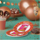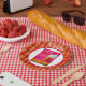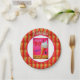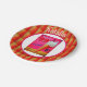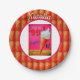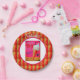 Vintage Eisdiele in rosa auf einer Orange mit einer Eistüte. Set auf einem Kegel gemusterten Hintergrund. Passen Sie an, wenn Sie möchten.