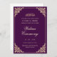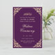 Eleganter, Vintager Stil islamische Walima Zeremonie Einladungskarte. Ankündigung. Luxuriöse Empfang-Dinner-Feier. Einfaches lila Pflaumenbild mit traditioneller goldblühender Akanthus-Dekoration in der Ecke des Rahmens. Golden arabic calligraphy Schriftart. Antike. Klassisch. Stilvolle romantische Schrift-Typografie für die Namen des gesegneten Paares. Valima. Passen Sie diese schöne Einladungskarte an, indem Sie die Details der Zeremonie wie die Adresse des Veranstaltungsortes und Datum und Uhrzeit bearbeiten. Sie können aus der Zazzle-Kollektion Premium-Papiertypen auswählen, um dieses Produkt für Sie einzigartig zu machen. Für Nachhaltigkeit können Sie sich den digitalen Download statt eines Drucktisches ansehen. Der Leerumschlag wird bereitgestellt. Im Frühjahr Sommer Hochzeit im Herbst lebenswichtig.