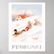 Capture the joyful spirit of a snow-covered February with this enchanting illustration by the beloved Swedish artist Elsa Beskow. This vintage poster features a charming scene of children sledding down a sunlit hill toward a cozy cottage, rendered in Beskow’s timeless watercolor style.