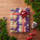 Papier mit einem sich wiederholenden Muster umhüllen. Entworfen mit einem Paar von süßen kleinen Engel Kirubim mit weichen weißen Flügeln und bekleidet in diaphanischen Kleidungsstücken. Eine flüstert leise in den anderen Ohren. Set auf einem königlichen lila Hintergrund.