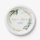 Diese Vintagen, goldgrünen Eukalyptus Hochzeitszettel-Teller sind perfekt für eine einfache Hochzeit. Das Design besteht aus handbemalten Aquarellgrün, goldenen und blauen Blätter und Blume, die in Bouquets und geometrisch eleganten Rahmen gepflegt sind. Diese Teller sind ideal für den Kuchen- oder Desserttisch. Machen Sie es sich selbst, indem Sie die Namen der Braut und des Bräutigams und das Hochzeitstag angeben.