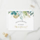 Diese Vintage, goldfarbene und grüne Eukalyptus Trauzeugin Einladung Postkarte ist perfekt für ein einfaches Brautparty. Das Design besteht aus handbemalten Aquarellgrün, goldenen und blauen Blätter und Blume, die in Bouquets und geometrisch eleganten Rahmen gepflegt sind.