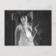 Vintages Foto einer Frau mit Abend im Flatterstil. Vintage 20er Jahre Frisur und Kleid. Alte Frauenmode Schwarz-Weiß-Foto aus dem Jahr 1920.