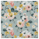 Beautiful vintage-style floral seamless pattern featuring soft pink, cream, and yellow blossoms on a muted blue background. Perfect for custom fabric, quilting, sewing, baby items, and home décor projects. Created by Mud Melon.