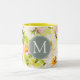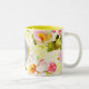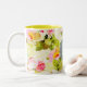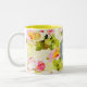 Klassisches Blumenmuster alter wilder Rose und Bauern auf Bisterboden. Sehr klassische Vintage Grafik mit personalisiertem Monogramm in pastellgrauem Quadrat auf zweifarbiger Tasse. Sie können das Monogramm (Schriftart, Größe, Farbe und Position) und das Quadrat (Größe und Position) einfach ändern. Matching-Produkte: Gepäck, Gepäckstück, Kissen, Hüllen und mehr... Vergessen Sie nicht die gesamte Kollektion Vintager Blumenmuster mit Monogramm.