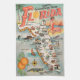 Vintage Florida-Karte der touristischen Anziehungskräfte ist cooler retro Kitsch sowie ist ein historischer Blick in altes Florida. Bedeutende Städte und Ikonen der Shows schließen Strand, Palme, Orangen, Alligator, Segelboot, etc. mit ein.