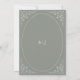This elegant wedding invitation pairs a beautiful vintage typeface with sans serif font. The white text is framed by a thin oval surrounded by delicate botanical vine motifs in the corners, on a sage green background. The frame is repeated on the reverse, enclosing a pair of monogram initials.