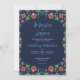 Dieses Vintage Folklore-Design der mexikanischen Navy Blauer Blauer Blumenzwiebelzauber bietet einen dunkelblauen Hintergrund, umgeben von einer lebhaften und symmetrischen Reihe folkloristischer Blumenmuster in fetten Orange-, Rosa-, aquamarin- und Grüntönen. Stilisierte Herzen mit Flammen stehen im Mittelpunkt beider Seiten und fügen eine symbolische und romantische Touch hinzu, die an die traditionelle mexikanische oder lateinamerikanische Kunst erinnert. Die komplizierte Anordnung von Blätter, Blume und skurrilen Wirbel schafft einen festlichen, fröhlichen Rahmen, der den Blick nach innen in den zentralen Raum zeichne - ideal für Hochzeitsempfehlung.