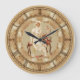 Diese Uhr ist mit einem Vintagen Viktorianischen Bild einer Frau in extravagantem Kleid auf einer Bank gedruckt.