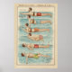 Perfect gift for a swimmer, swimming teacher or coach. Great for pools, locker rooms, poolside cabins. Celebrate classic aquatic style with this beautifully restored French swimming instruction poster, “Natation sur le ventre, Natation sur le dos.” The artwork features detailed step-by-step figures showing early freestyle and backstroke technique, rendered in soft hand-colored tones typical of late-19th-century educational prints. Subtle paper texture, elegant French captions, and charming period swimwear give it a nostalgic coastal feel, perfect for pool rooms, beach houses, gyms, vintage interiors, or anyone who loves the beach and swimming.