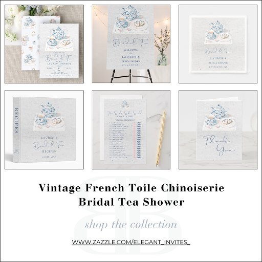 Vintage French Toile Chinoiserie Bridal Tea Shower Einladung