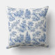 Elevate your home decor with the timeless elegance of this classic Blue Toile de Jouy throw pillow. Featuring an intricate pastoral scene with rustic cottages, arched bridges, and lush woodland trees, this design captures the charm of the French countryside. Perfect for traditional, cottagecore, or coastal-themed living rooms and bedrooms.